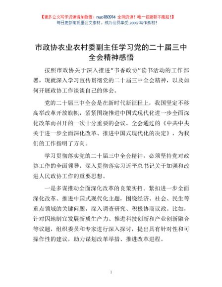 / 市政协农业农村委副主任学习党的二十届三中全会精神感悟