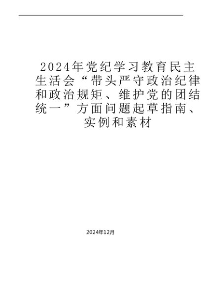 / (59条)2024年党纪学习教育民主生活会“带头严守政治纪律和政治规矩、维护党的团结统一”方面问题起草指南、实例和素材