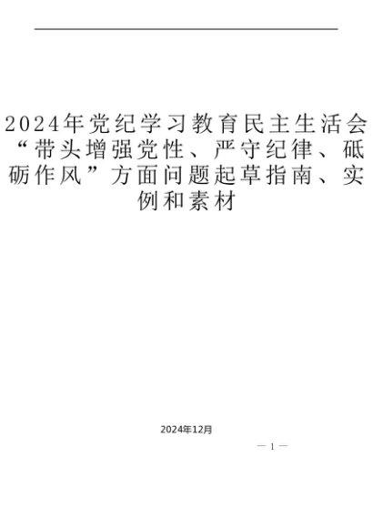/ (85条)2024年党纪学习教育民主生活会“带头增强党性、严守纪律、砥砺作风”方面问题起草指南、实例和素材