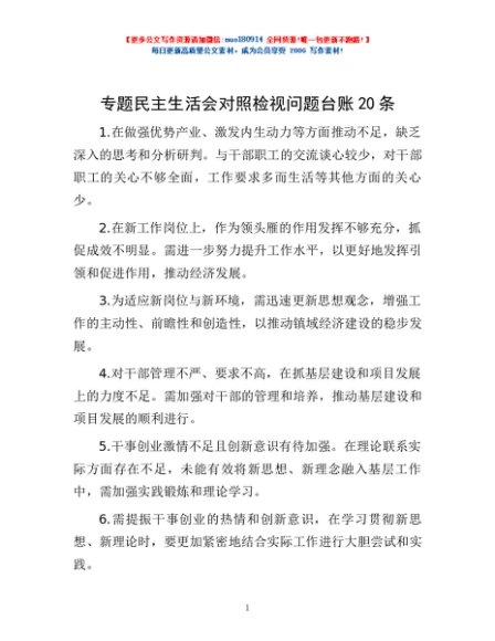 / 专题民主生活会对照检视问题台账20条