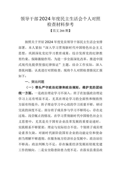 / 范文266期-领导干部2024年度民主生活会个人对照检查材料参考