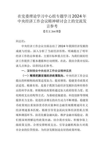 / 范文264期-在党委理论学习中心组专题学习2024年中央经济工作会议精神研讨会上的交流发言参考