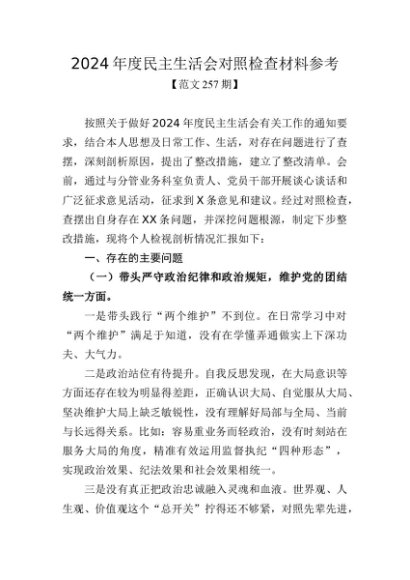 / 范文257期-2024年度民主生活会对照检查材料参考
