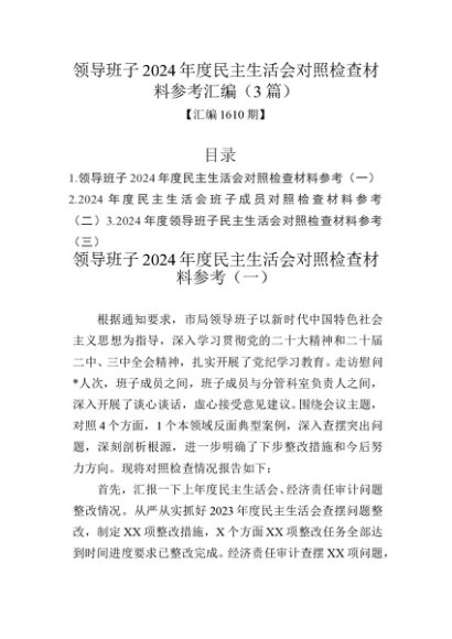 / 汇编1610期-领导班子2024年度民主生活会对照检查材料参考汇编(3篇)
