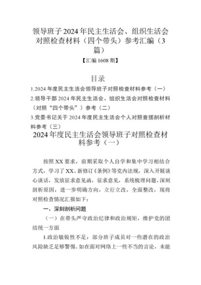 汇编1596期-2024年度专题民主生活会、组织生活会对照检查材料(四个带头)参考汇编(3篇)