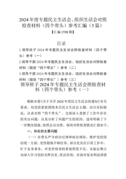 / 汇编1598期-2024年度专题民主生活会、组织生活会对照检查材料(四个带头)参考汇编(3篇)