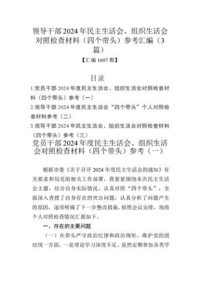 / 汇编1607期-领导干部2024年民主生活会、组织生活会对照检查材料(四个带头)参考汇编(3篇)