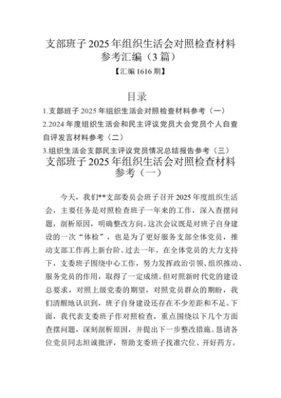 / 汇编1616期-支部班子2025年组织生活会对照检查材料参考汇编(3篇)