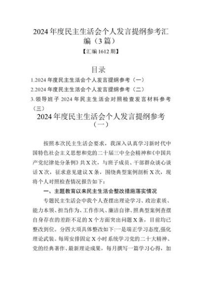 / 汇编1612期-2024年度民主生活会个人发言提纲参考汇编(3篇)