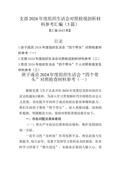 / 汇编1613期-支部2024年度组织生活会对照检视剖析材料参考汇编(3篇)