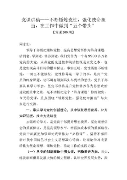 党课200期-不断锤炼党性,强化使命担当,在工作中做到“五个带头”