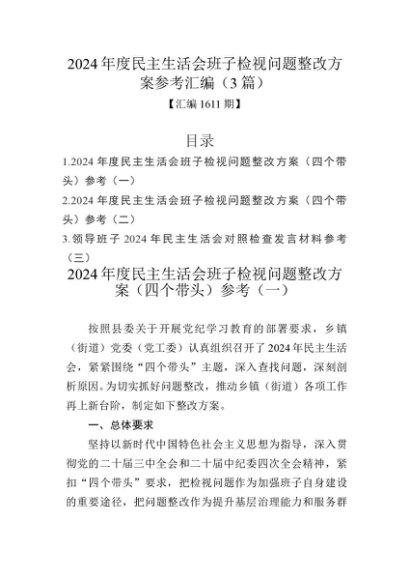 / 汇编1611期-2024年度民主生活会班子检视问题整改方案参考汇编(3篇)