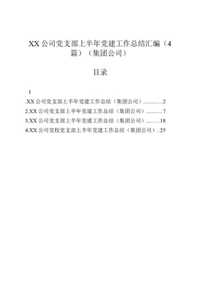/ XX公司党支部上半年党建工作总结汇编(4篇)(集团公司)