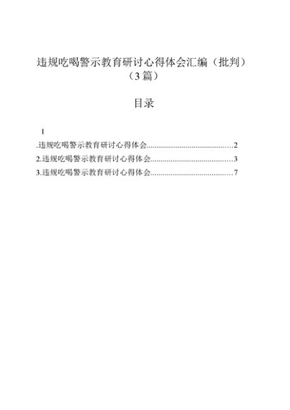 / 违规吃喝警示教育研讨心得体会汇编(批判)(3篇)