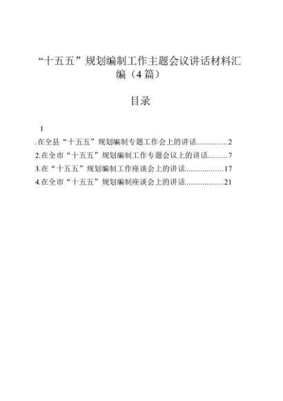 / _十五五_规划编制工作主题会议讲话材料汇编(4篇)