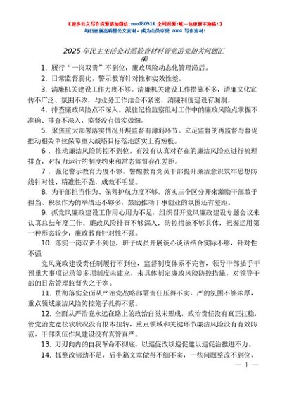 / 第147期(30条)2025年民主生活会对照检查材料管党治党相关问题汇编