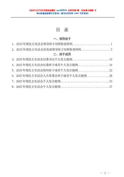 / 第151期(8篇)2025年民主生活会对照检查材料范文汇编