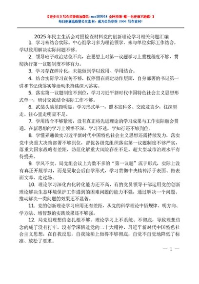 / 第149期(25条)2025年民主生活会对照检查材料党的创新理论学习相关问题汇编